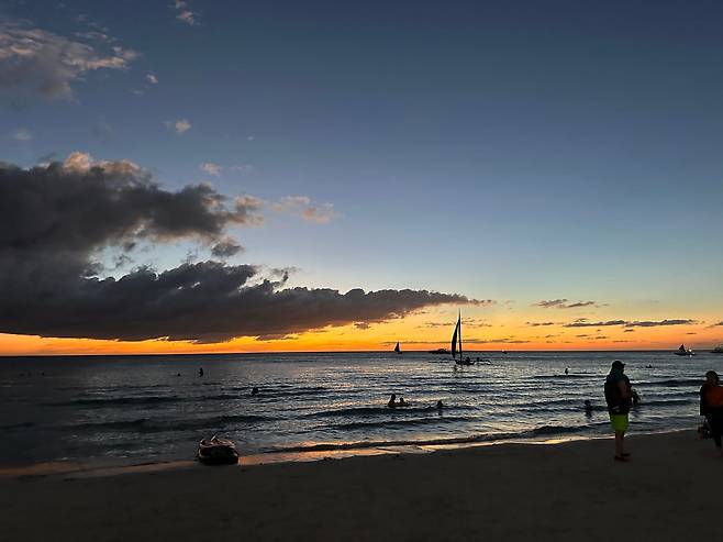 신나게 놀다보면 간식먹을 시간이라고 한번더 불러줘. 라면과 망고, 감자까지 허기를 한번 더 달래주고 집에갈 준비를 하게되. 뭔가 분명히 하루종일 호핑이라 했는데 아쉬움을 느끼게 되는 시간이 돌아와. 돌아갈때 날씨가 좋으면 세계 3대 선셋이라 불리우는 황홀한 모습을 보게된다구. 놀러 갈때와 다르게 감수성 넘치는 음악과 함께 있으면 " 그동안 나 잘살았다. 또 열심히 살고 다시 놀러오자" 이런 생각이 들어. 웃기지?ㅋㅋ