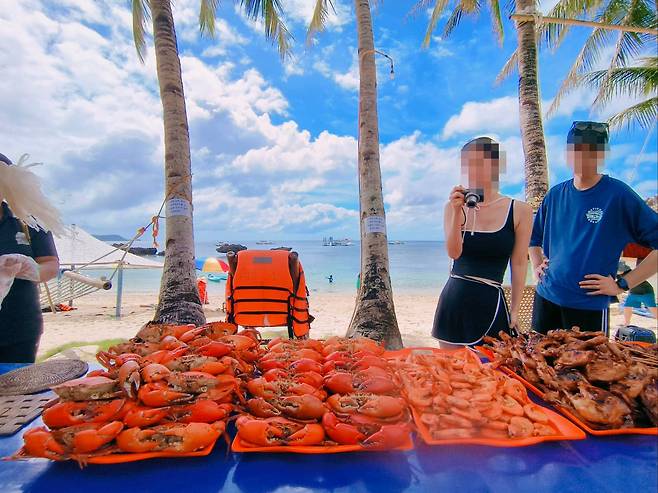 보라카이 호핑투어를 좀 더 살펴보면 맥주와 음료, 생수를 무한으로 제공해줘. 뭐 다 이렇잖아?라고 말할 수 있어. 차이점을 알려줄까? 모두 개인이 먹을 수 있는거야. 큰 물명 하나로 공용컵에 따라 마시는 음료와 맥주가 아니라구.