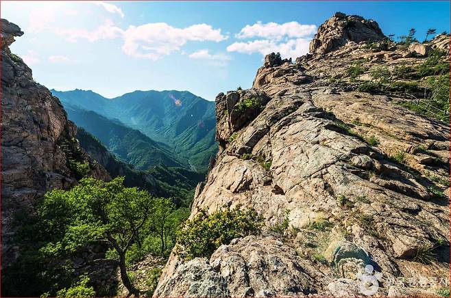 북쪽으로는 설악의 기암괴석들이 웅장한 자태를 뽐냅니다.