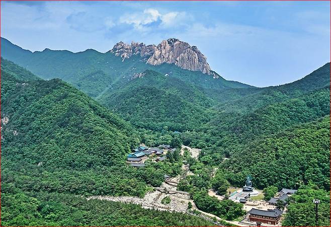권금성 승강장에서 5분 정도 내려가면 만나는 사찰로, 바로 앞에 노적봉과 토왕성 폭포가 자리해 외설악의 절경을 감상할 수 있습니다. 절 앞에 서면 수백 년 세월을 견뎌온 고고한 무학송이 여행객들의 발길을 붙잡습니다.
