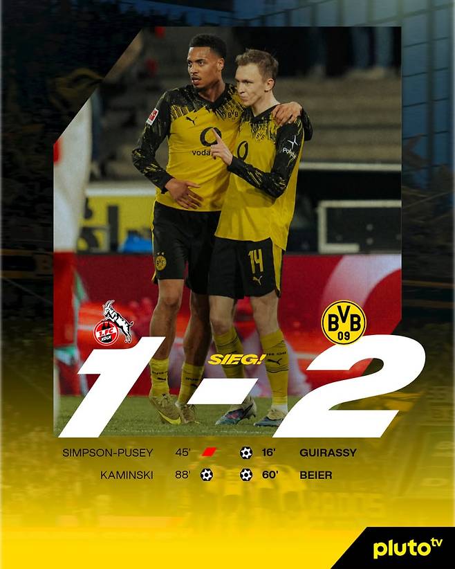 도르트문트는 경기 막판 들어 템포를 끌어올렸다. 후반 21분 실바의 슈팅 상황에서 외즈카르와의 경합 과정에서 페널티킥이 선언됐지만, VAR 검토 끝에 외즈카르가 공을 먼저 건드린 것으로 확인되며 판정은 취소됐다. 이어 경기 종료 2분을 남기고 카민스키의 슈팅이 수비에 맞고 굴절되며 쾰른이 한 골을 만회해 1-2가 됐다. 추가시간에는 혼전 상황이 이어졌지만 도르트문트는 추가 실점 없이 쾰른 원정에서 힘겨운 승점 3점을 지켜냈다.
