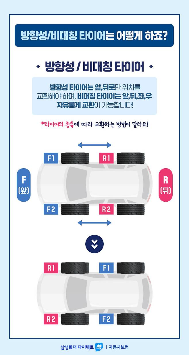 비싼 타이어, 교체한 지 얼마 안 되었는데 오래 쓸 순 없을까요? 타이어를 오래 사용하기 위해서는 주기적으로 타이어 위치를 교환해주면 된다는 사실 알고 계시나요?