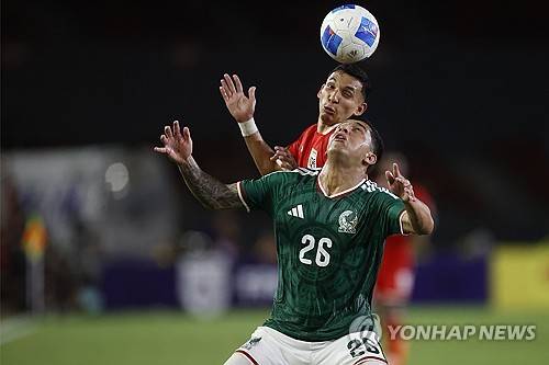 epa12673132 Omar Cordoba (Back) of Panama vies for the ball with Bryan Gonzalez of Mexico in a friendly match between the national teams of Panama and Mexico at the Rommel Fernandez Gutierrez stadium in Panama City, Panama, 22 January 2026. EPA/Bienvenido Velasco