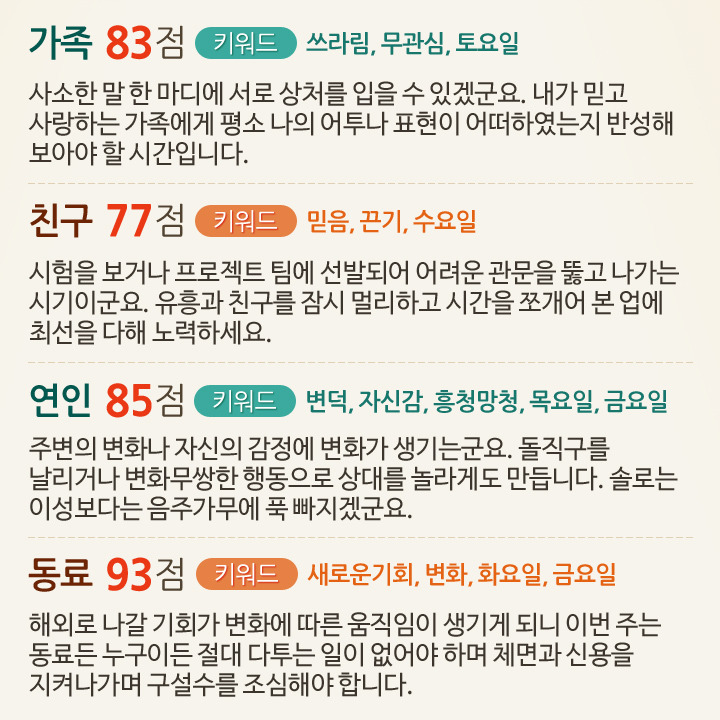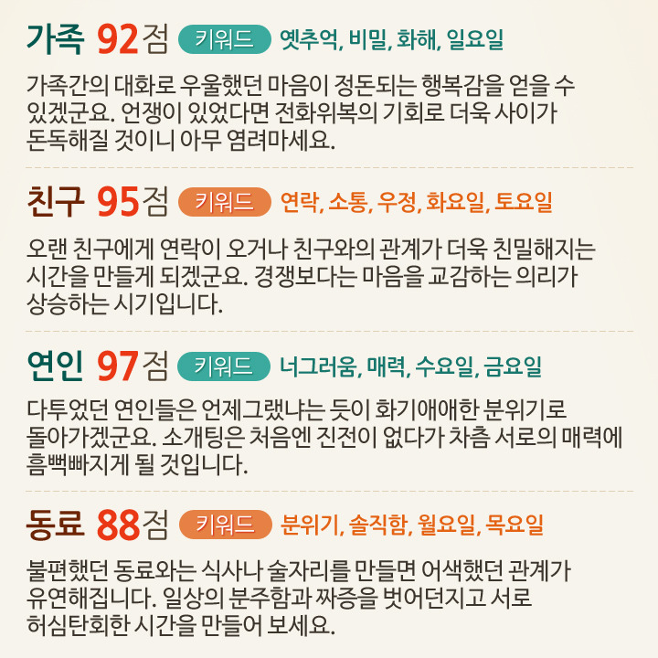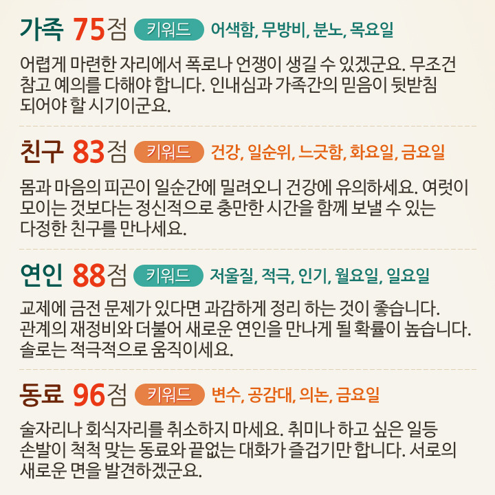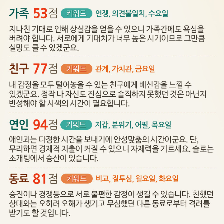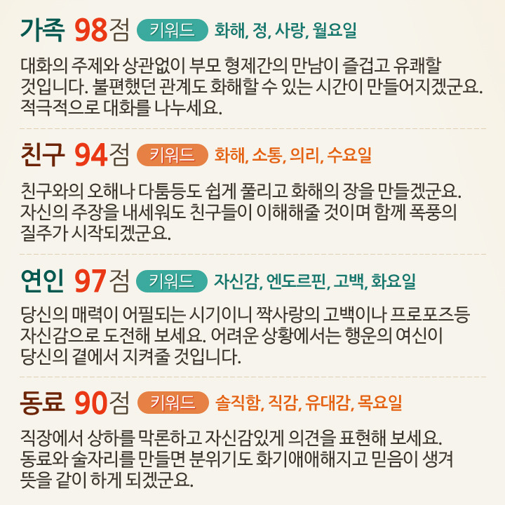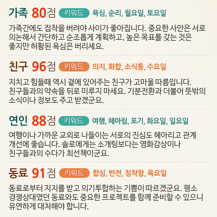 7월 1일부터 7일까지 대인관계운세