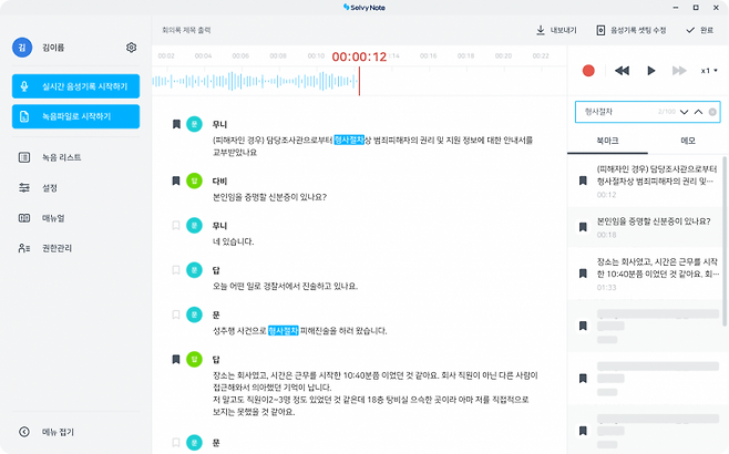 그중 2022년 셀바스AI의 효자상품으론 '셀비 노트'가 꼽힌다. 음성을 AI로 인식하고 텍스트 변환 및 화자 분리를 지원하는 소프트웨어다. 일반 소비자 시장에서 큰 인기를 끌고 있는 네이버의 '클로바노트'와 유사한 서비스다. 차이점은 클로바노트가 일반 사용자 대상(B2C)의 무료 범용 서비스라면 셀비 노트는 경찰 조서나 상담 내용 변환에 특화된 기업 대상(B2B) 제품이란 것. 경찰에서 용의자를 심문할 때 이전에는 모든 내용을 직접 PC에 입력했다면, 지금은 전국 경찰서 조사실에 셀비 노트가 도입돼 해당 과정의 수고를 덜어주고 있다.