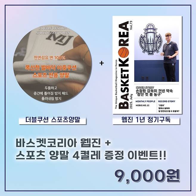 바스켓코리아, 2025년 7월호 웹 매거진 발간 … KOREA 티셔츠-더블쿠션 스포츠 양말 프로모션 이벤트 계속 진행