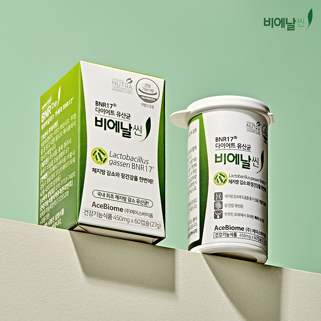 매출 확대의 배경은 단연 제품력에 있다고 회사는 설명했다. 에이스바이옴은 식품의약품안전처에서 체지방 감소 기능성을 인정한 '락토바실러스 가세리 BNR17' 유산균을 주원료로 제품 라인을 구성했다. BNR17은 SCI급 논문에 820회 이상 인용됐을 뿐 아니라, 미국 영양건강기능원료대회(2018 NutraIngredients-USA)에서 '올해의 체중관리원료 1등'을 수상하며 세계적으로 우수성을 인정받았다.