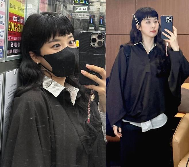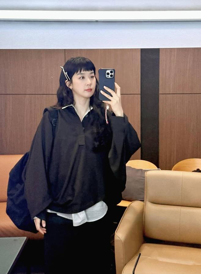 공개한 사진에서 이청아는 앞머리를 자른 뱅 헤어 스타일에 셔츠와 블랙 풀오버 셔츠를 레이어드한 데일리룩으로 청순하면서도 귀여운 동안 미모를 선보였다.