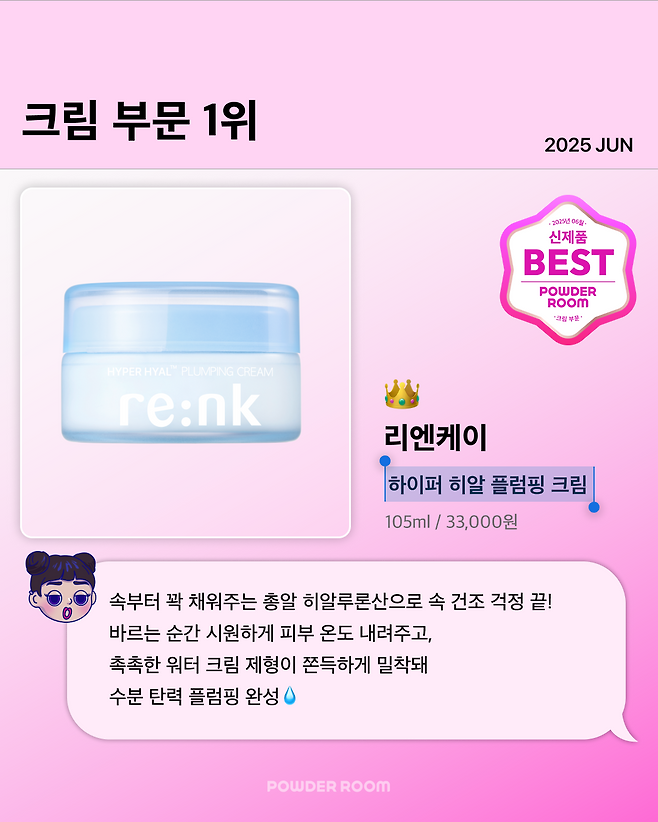 쫀쫀한 워터 크림 제형이 촉촉하게 밀착돼서