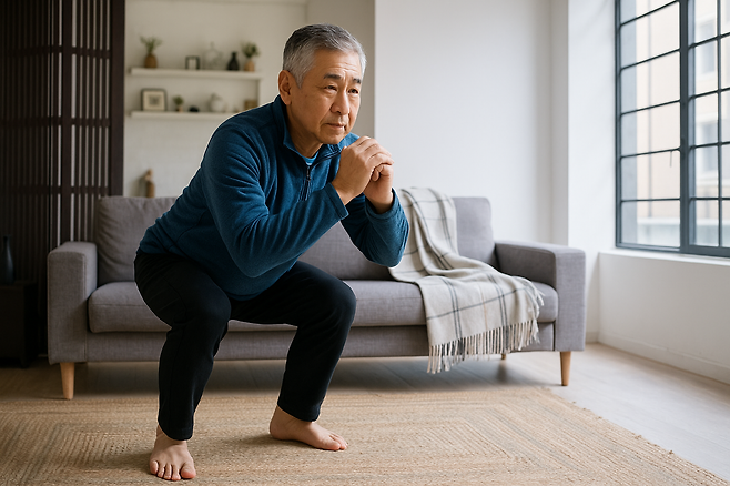1. 가벼운 근력 운동: 스쿼트, 플랭크, 밴드 운동 (근감소 예방)