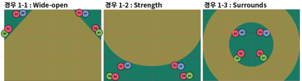 1-3 메세지가 Surrounds 인 경우 : 중앙을 기준으로 도넛 모양 AoE