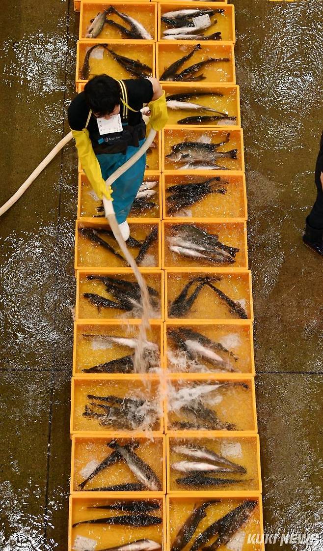 남해 양식장에서 대형 활어차에 광어를 가득 싣고 노량진수산시장에 도착한 김지웅 씨는 활어를 경매장으로 옮기면서 “밤 늦은 시간에 고속도로로 쉼 없이 달려왔다”면서 “힘든 만큼 오늘 경매에서 높은 가격을 받아 집으로 돌아 갔으면 좋겠다”고 말했다.