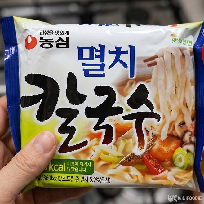 농심 멸치칼국수 라면은 기름에 튀기지 않은 건면으로 만들어진다. 일반 라면보다 면발이 두툼하고 칼로리가 360kcal로 낮은 편이다. 건면은 기름기가 없어 담백하고, 끓이는 과정에서 면 표면의 전분이 서서히 국물로 빠져나온다.