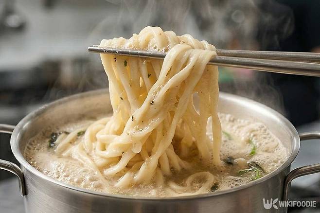 5분만 끓이면 국물이 맑고 면발이 쫄깃하다. 농심 기본 조리법대로 먹으면 깔끔하고 개운한 맛이 난다. 그런데 여기서 5분을 더 끓이면 면 표면의 전분이 완전히 풀리면서 국물이 묵직하게 변하고, 면발은 국물을 충분히 흡수해 두툼하게 부풀어 오른다. 인스턴트 라면 특유의 가벼운 맛이 빠지면서 진짜 칼국수집에서 먹는 것과 비슷한 식감이 나온다. 처음 먹어보면 같은 제품이 맞나 싶을 정도로 맛이 달라진다. 농심이 공식 계정에 올리기 전까지는 매니아들 사이에서만 알려진 레시피였는데, 농심이 직접 인정하면서 제대로 알려지게 됐다.