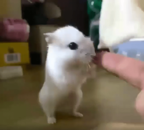 작고 말랑한 두 손으로 사람의 손가락을 꼭 붙잡고 선 존재. 하얀 햄스터 한 마리가 마치 세상에서 가장 소중한 파트너를 만난 듯 조심스럽게 몸을 일으켜 섭니다. 그리고 주인의 손가락이 좌우로 천천히 흔들리자, 햄스터의 몸도 그 움직임을 따라 함께 리듬을 탑니다.