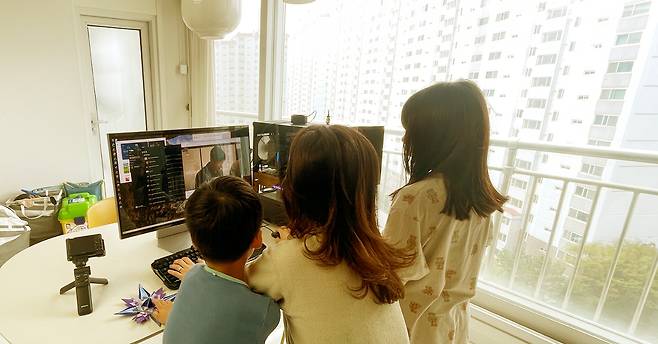 사무실에서 가지고 있다가 집에서 2주간 더 사용해볼려고 시스템 전체를 뜯어 왔더니 각자 모두가 원하는 최애를 눈에 담기 위해서 옹기기 모여 있습니다.