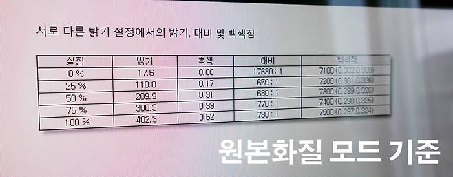 밝기 SDR 기준 400 / 명암비 700:1 입니다.