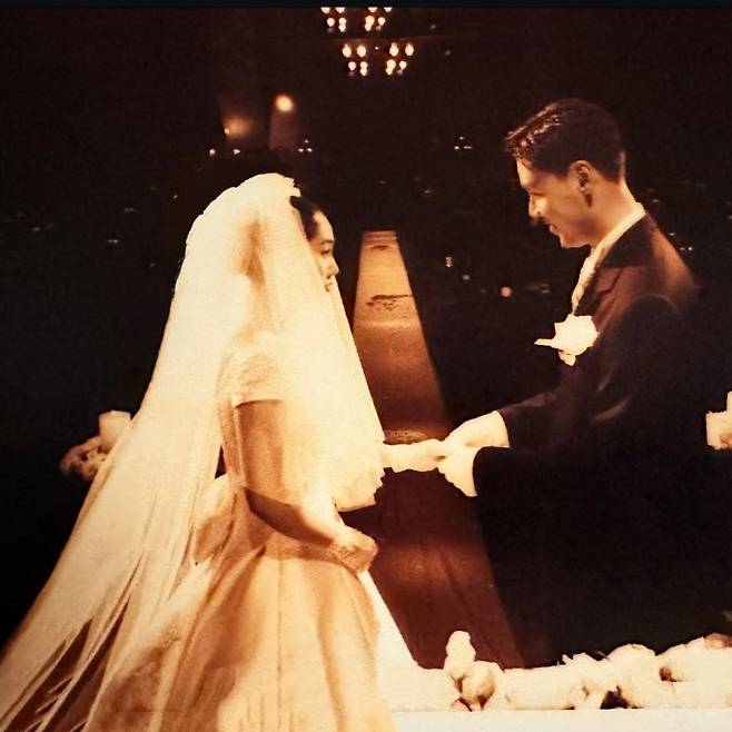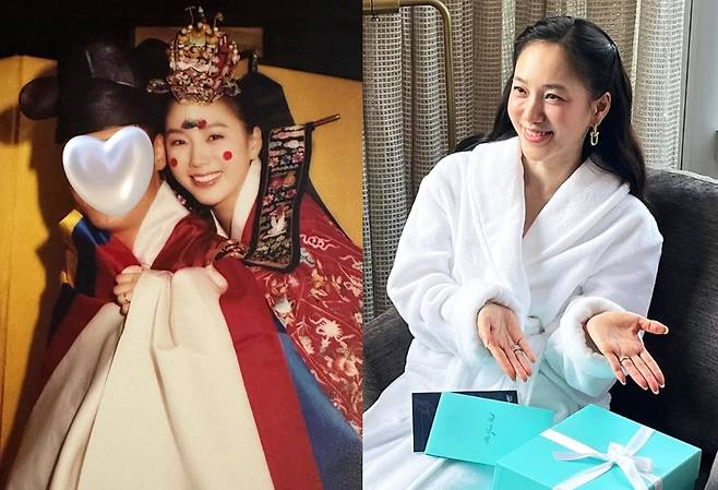 과거 결혼식 사진 속 단아한 신부 이미지와 현재의 우아한 사모님 룩이 절묘하게 교차되며, ‘시간이 멈춘 듯한’ 비주얼을 완성했다는 반응을 이끌어냈습니다.