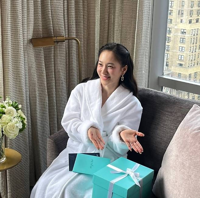 박주미는 화이트 로브 차림에 고급 주얼리와 티파니 박스를 매치하며 ‘청담동 사모님’ 그 자체의 품격을 자랑했습니다.