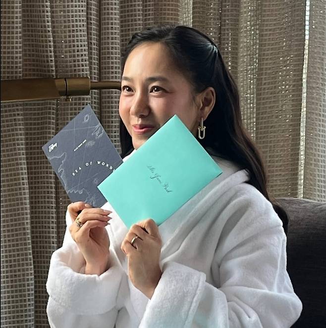 특히 눈길을 끈 건 손에 반짝이는 웨딩밴드와 정제된 골드 이어링으로, 결혼 반지 하나에도 고급스러운 무드가 흐르고 미소와 함께한 손끝 포즈에선 그야말로 우아함 끝판왕의 여유가 묻어났습니다.