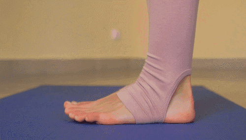 바닥에 서서 양발을 어깨너비로 벌리고 균형을 잡습니다. 발꿈치를 동시에 공중으로 올려 최대한 높이 들어줍니다. 발꿈치를 바닥으로 내리면서 발가락을 들어줍니다.