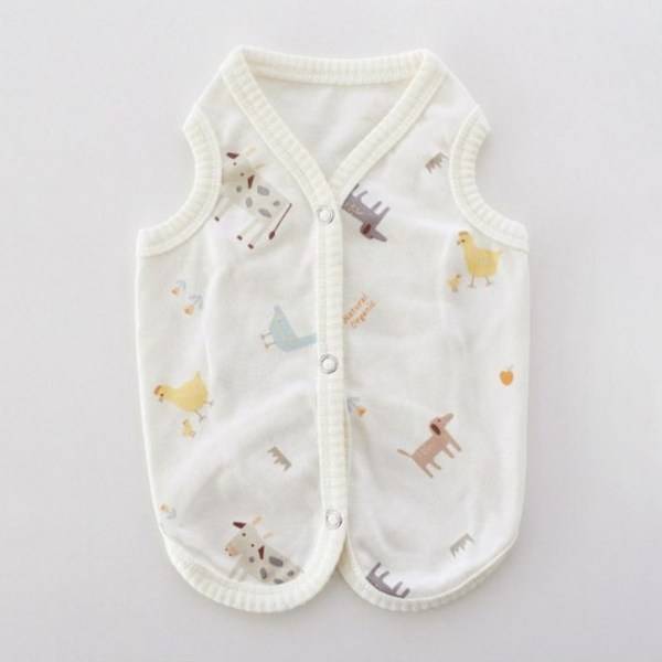 면 소재의 얇은 조끼예요. 날이 조금 쌀쌀한 봄, 가을철 산책 시 단독으로 입히기 좋아요. 여름철 에어컨을 틀었을 때, 겨울철 실내 온도가 떨어졌을 때 실내복으로 입힐 수도 있습니다. 실내복으로 입힐 용도라면, 신축성이 좋고 통풍이 잘 되는 것 그리고 얇고 가벼운 것으로 고르는 걸 추천해요.