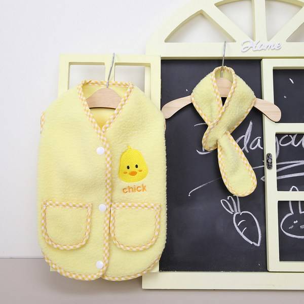 도톰하고 부드러운 수면 소재의 강아지 조끼입니다. 가벼워서 착용감도 좋기 때문에, 활동량이 많은 강아지에게도 부담 없이 입힐 수 있어요. 목도리도 세트로 있어서, 추운 날 활용하기 좋답니다. 약간 작게 나온 편이라고 하니 참고해 주세요.
