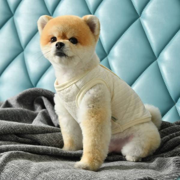 얇은 누빔 조끼로 가을, 겨울에 실내복 혹은 다른 옷과 레이어드해서 입히기 좋은 제품이에요. 면 소재로 부드러워 피부가 예민한 강아지에게도 추천합니다. 또, 신축성도 조금 있는 편이에요.