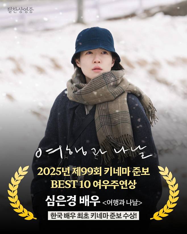 일본영화 베스트10 1위와 여우주연상을 동시에 석권한 <여행과 나날>은 현재도 전국 극장에서 상영 중이다. 한일 양국을 넘어 세계 영화계에서 의미 있는 기록을 쌓아가고 있는 이 작품과 심은경의 행보가 앞으로 어떤 확장으로 이어질지 관심이 모인다.