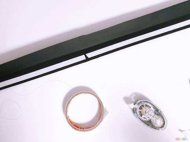 한쪽면에 양면 테이프를 붙여주세요. 저는다이소에서 풀 테이프를 사용했어요.