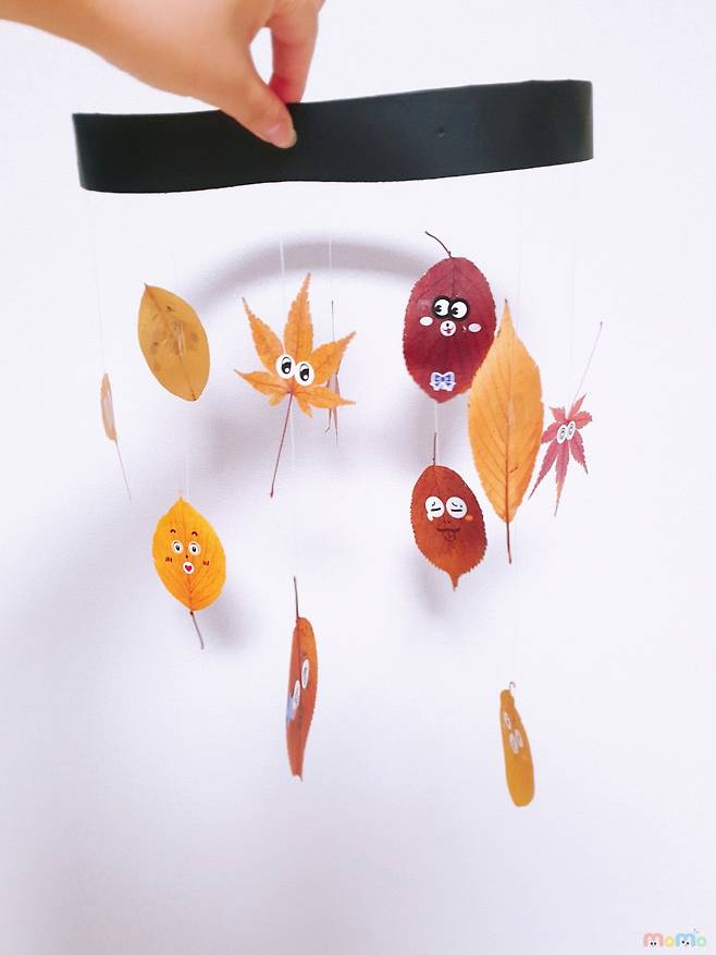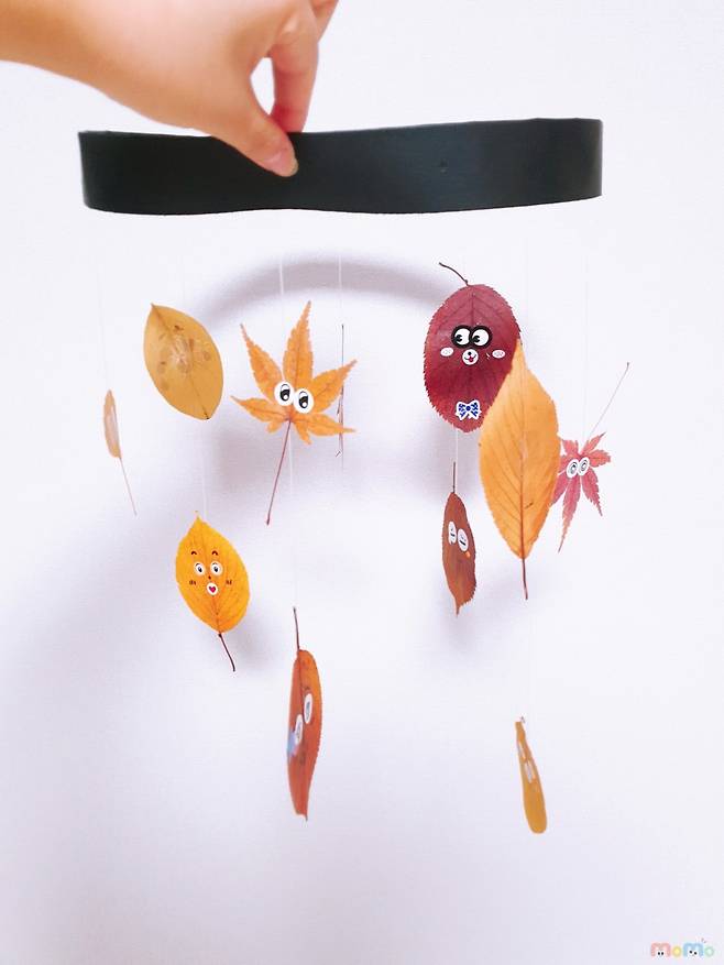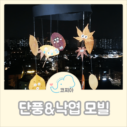 오늘 소개해드릴 놀이는 지난번에 낙엽꾸미기로 만든 귀여운 단풍&낙엽으로 만든 모빌이랍니다! 귀엽게 꾸민 낙엽을 버리기는 아까워서 아이랑 함께 모빌을 만들어 보았어요~