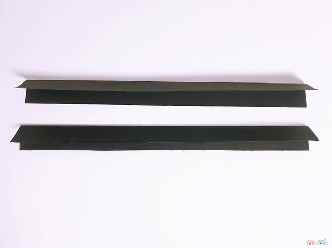 그다음 사진처럼 긴 색상지를 반 접어주세요. 그리고 두장을 길게 연결해서 붙여주세요.