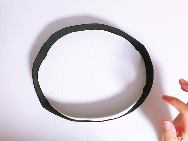 마지막으로 색상지를 타원형으로 만들어서 끝을 테이프로 연결하여 붙여주세요.