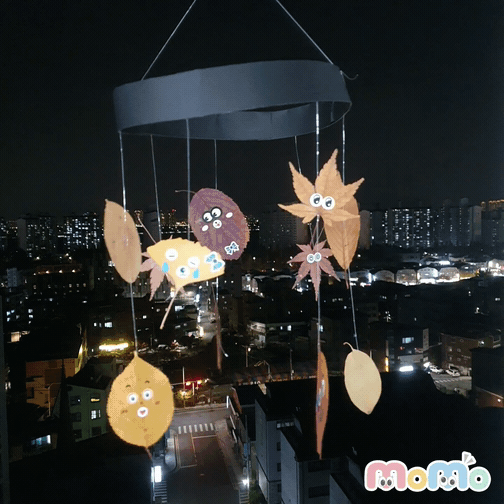 준비물 : 색상지, 낚싯줄, 양면테이프, 가위, 꾸민 낙엽