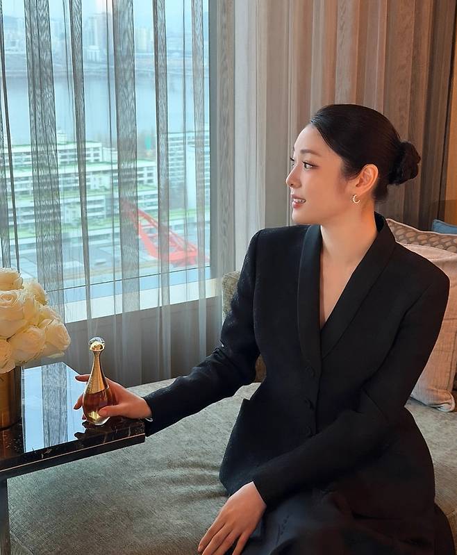 화려한 장식 없이도 자켓 하나만으로 완성한 올블랙 룩은 그녀의 맑고 투명한 피부톤을 더욱 강조하며 범접할 수 없는 우아함을 완성했죠.