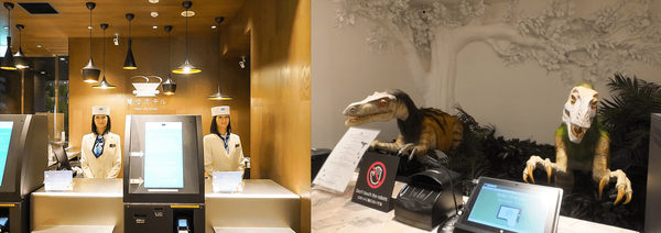 로비로 들어서자마자 로봇이 맞이하는 헨나 호텔은 ‘세계 최초로 로봇이 일하는 호텔’로 기네스북에 등재됐습니다. ‘헨나’는 일본어로 ‘이상하다’는 뜻으로, 프런트에 자리한 공룡 로봇(미라이쿤)과 여성 로봇(유메코짱)을 처음 만나면 그런 느낌이 들 것만 같습니다. 헨나 호텔은 사람이 하는 일의 70%를 로봇으로 자동화해 인건비를 1/3로 줄였습니다. 이로써 숙박료도 낮아지면서 경쟁력을 높여가고 있습니다.