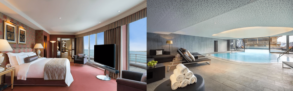 제네바 호수와 알프스 전경을 한눈에 감상할 수 있는 스위트룸에는 12개의 침실과 개인 헬스장, 자쿠지, 당구대 등이 마련되어 있답니다. 게다가 투숙객만을 위한 개인 비서와 요리사, 경비원까지 제공되어 프라이빗한 서비스를 만끽할 수 있습니다.
