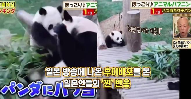 프로그램에는 에버랜드 판다월드에서 일상을 보내는 후스타의 모습이 공개됐습니다. 주키퍼들과 장난을 치고 '후극성'답게 엄마에게 어리광을 부리는 모습이 모두 공개됐고, 일본 사람들은 너무도 귀여운 후이의 모습에 함박웃음을 지어보였죠.