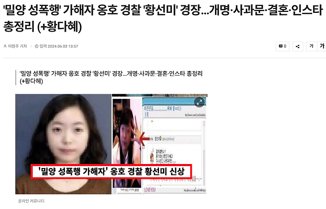 지금 여경으로 활동중인 황선미(현재 개명으로 황다혜)가 아닐까 봅니다.