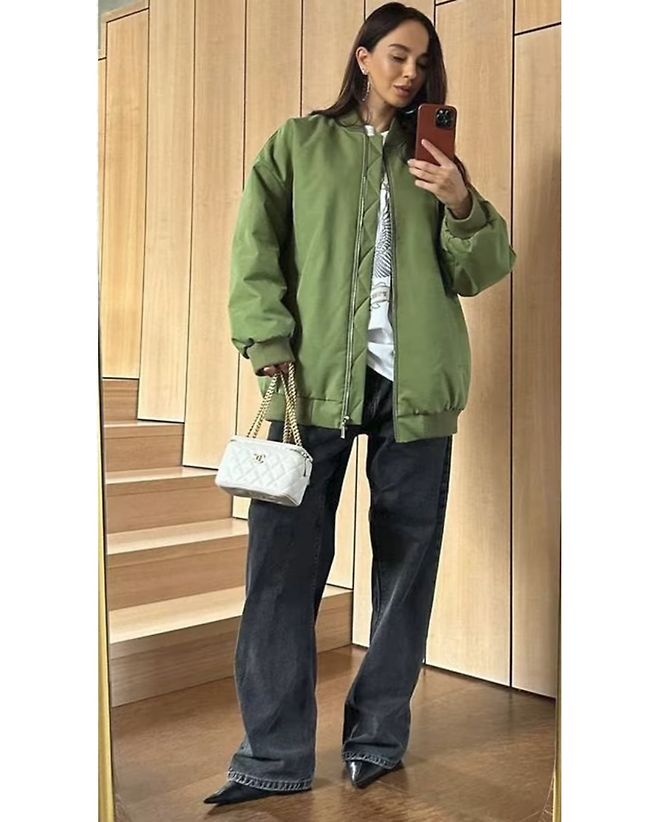 항공점퍼로 그린 포인트를 줘서