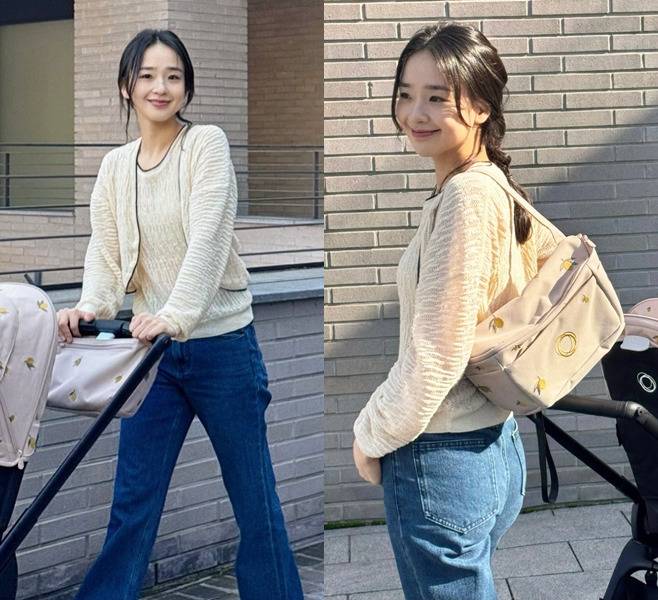 특히 귀여운 레몬 프린팅이 포인트인 베이지 유모차와 동일 패턴의 백으로 센스 있는 스타일링을 보여주었고, 아이와 함께 하는 일상에서도 스타일과 사랑을 모두 챙기는 모습으로 시선을 사로잡았습니다.