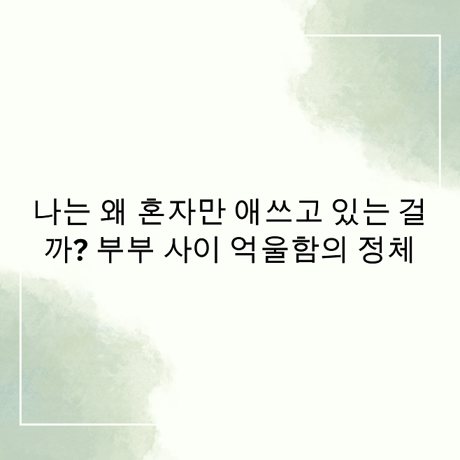 부부는 같이 가야 하는 사이다. 한쪽만 발을 내딛고, 한쪽만 숨이 차면 결국 끝이 보인다. 억울한 마음이 들었다면 지금이 대화의 타이밍이다. 감정을 풀기 위한 대화가 아니라, 방향을 다시 맞추기 위한 대화여야 한다.