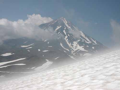 회의 끝에 일행은 까략스키 바로 오른쪽에 버티고 섰는 2750미터의 아바친스키 정상까지 등반하기로 했다. 아바친스키는 활화산으로 지금도 꼭대기에서 연기가 솟아오르고 있다. 하루 만에 왕복하기에 만만한 곳은 아니었다. 언덕을 수없이 넘어야 했기에 왕복 10시간이 걸렸다.