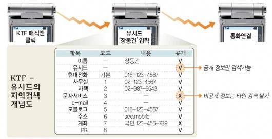 무엇보다도 전화번호 외에 팩스,이메일,홈페이지까지 연결된다는 것이 장점이다.9일까지는 유시드 홈페이지(www.usid.co.kr)에서만 등록받지만 서비스 시작 이후에는 단말기에서도 가능하다.별도의 정보이용료는 없고 무선인터넷 요금도 통화당 2.5원 정도로 싸다.