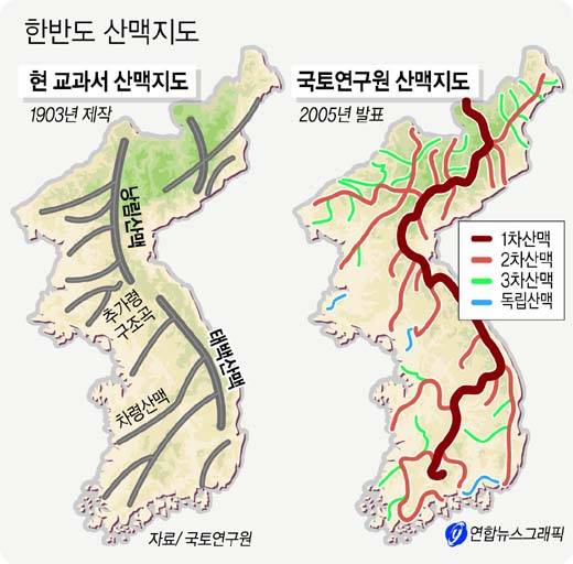 한반도 산맥지도 바로잡았다