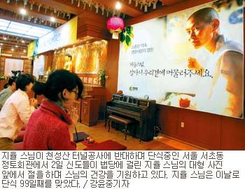 "지율스님 일어나세요"조계종 정토회관서 96일째 단식 이어가