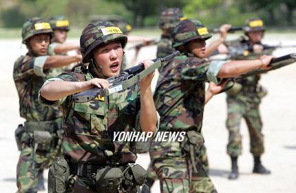 20일 충남 공주시 육군 제32사단으로 군사실습을 나온 대전대 군사학과 1학년 학생들이 현역병 교관의 지도에 따라 총검술을 배우고 있다. 이번 군사훈련에 입영한 대학생들은 군이 좋아 평균 13대 1의 경쟁률을 뚫고 이 학과에 들어왔으며 군 장학생 과정을 거쳐 장교 등 군간부로 성장하거나 민간 군사전문가로 활동하게 된다./조용학/지방/사회/ 2005.6.20 (공주=연합뉴스) catcho@yna.co.k