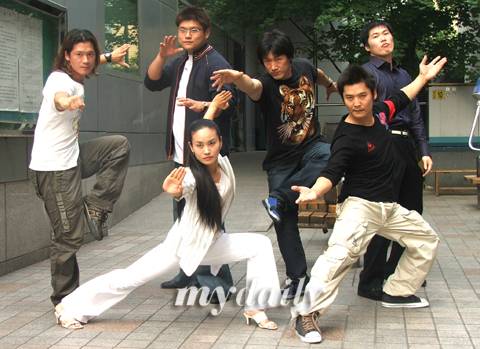 [ 영화 '거칠마루'의 포스터(위)와 실제로 출연한 무술 고수들. 우슈 고수 권민기, 유도 고수 김진명, 택견 고수 장태식, 합기도 고수 유지훈, 가라데 고수 성홍일, 우슈 고수 오미정씨 등.(왼쪽 끝부터 시계방향). 사진=김민성 기자 song4u@mydaily.co.kr ]