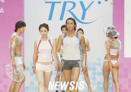 23일 대전 중구 은행동 으능정이 문화의거리에서 열린 트라이 언더웨어 패션쇼에서 모델들이 섹시한 란제리를 선보이고 있다. /정재훈기자 jhjeong@newsis.com