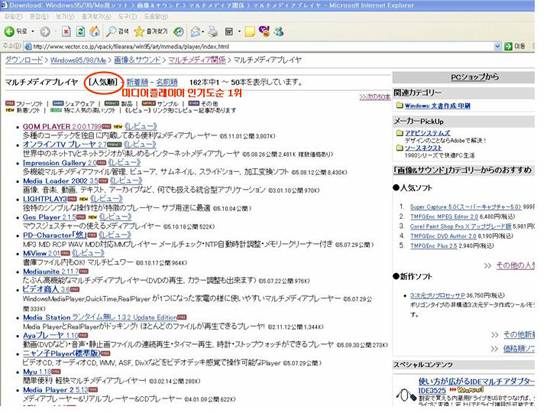 디지털 엔터테인먼트 콘텐츠 기업 그래텍(대표 배인식 www.gretech.com)은 4일 자사의 멀티미디어 재생기 '곰플레이어'가 일본의 소프트웨어 다운로드 사이트 벡터(www.vector.co.kp)에서 다운로드 1위에 올랐다고 밝혔다.